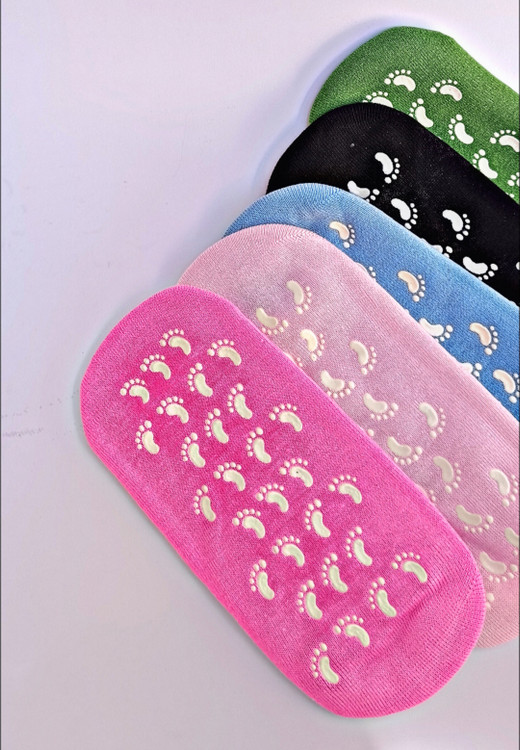 جوراب های سیلیکونی با داشتن لایه مخصوص سیلیکون به جذب مواد به پا کمک میکنند و باعث از بین رفتن پینه خشکی ترک کف پا میشوند فقط کافیه با کرم و روغن پارا ماساژ یا مواد را به درون جوراب ریخته و ۲۴ ساعت صبر کنین تا پاهای نرم و لطیفی تحویل بگیرید